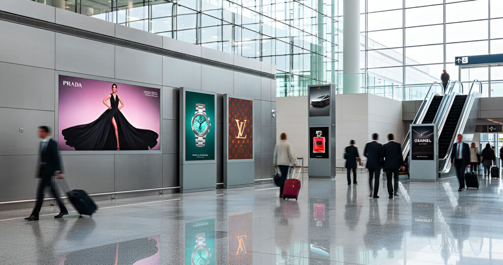 Premium indoor advertising spaces inside airports targeting high-value travelers and business audiences.