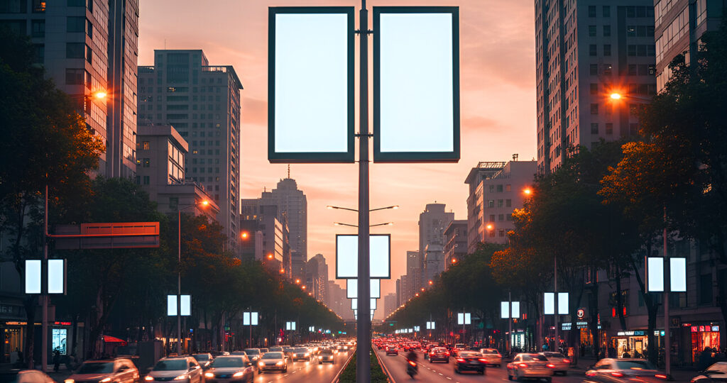 Large outdoor advertising displays placed in high-traffic locations to maximize brand visibility and audience reach.
